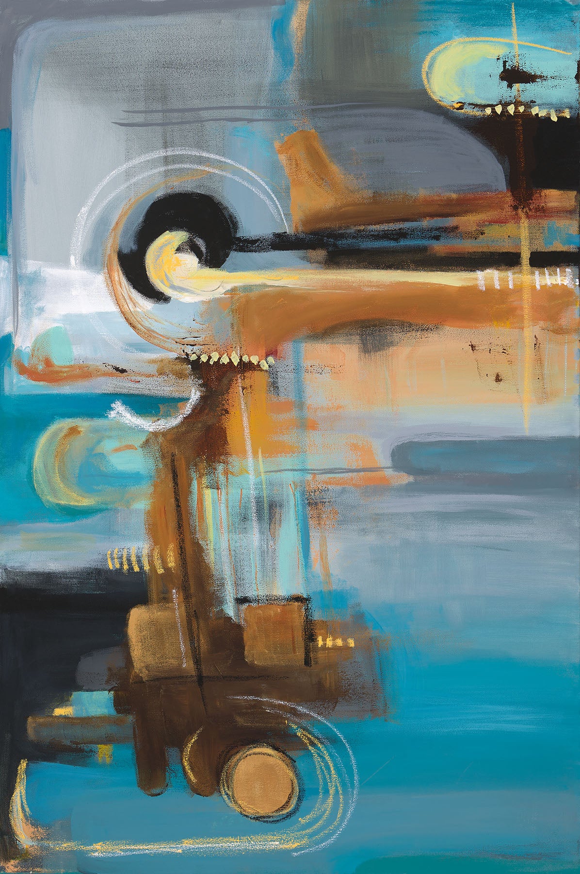 Beacon is a 24"x36" abstract acrylic painting on a gallery-wrapped canvas. It is painted using fluid and heavy body acrylics with accents of a resin/oil crayon. The painting continues onto the 2" edges of the canvas allowing it to be hung as it is, instead of requiring a frame. It is wired and ready to be hung in your home.