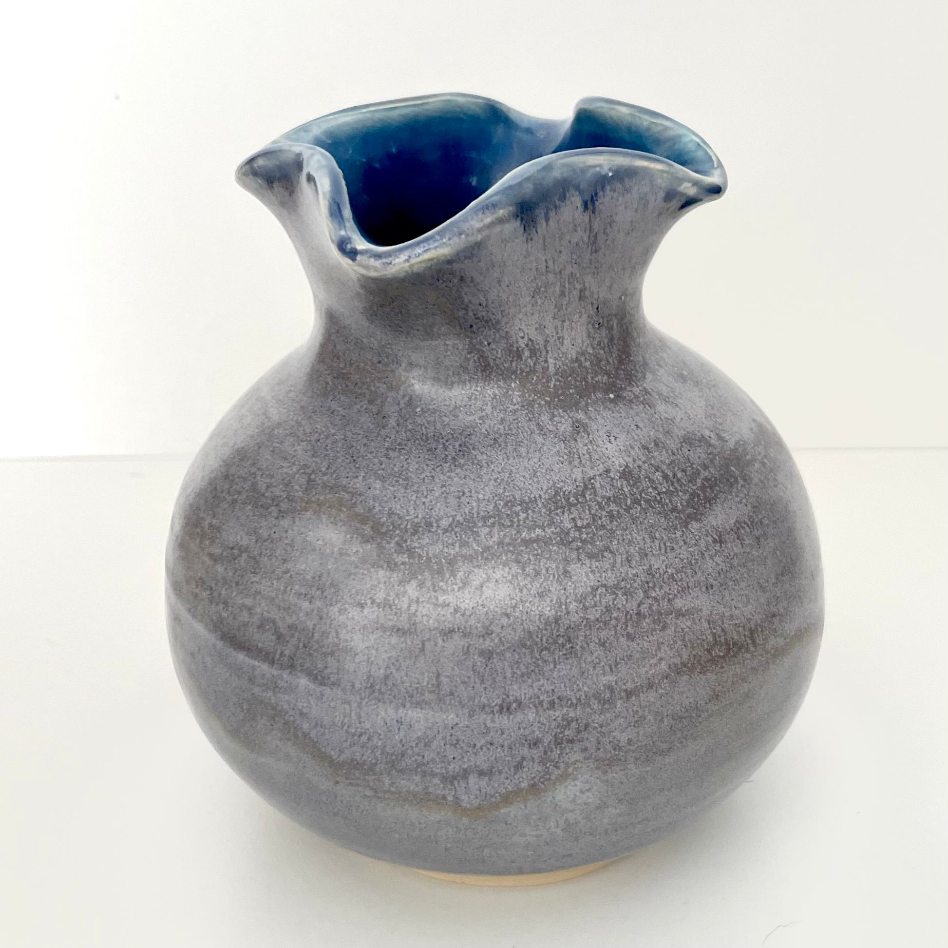 5" x 5.5" round "blueberry" vase - in graduated tones of blue gray there was no other name that fit!