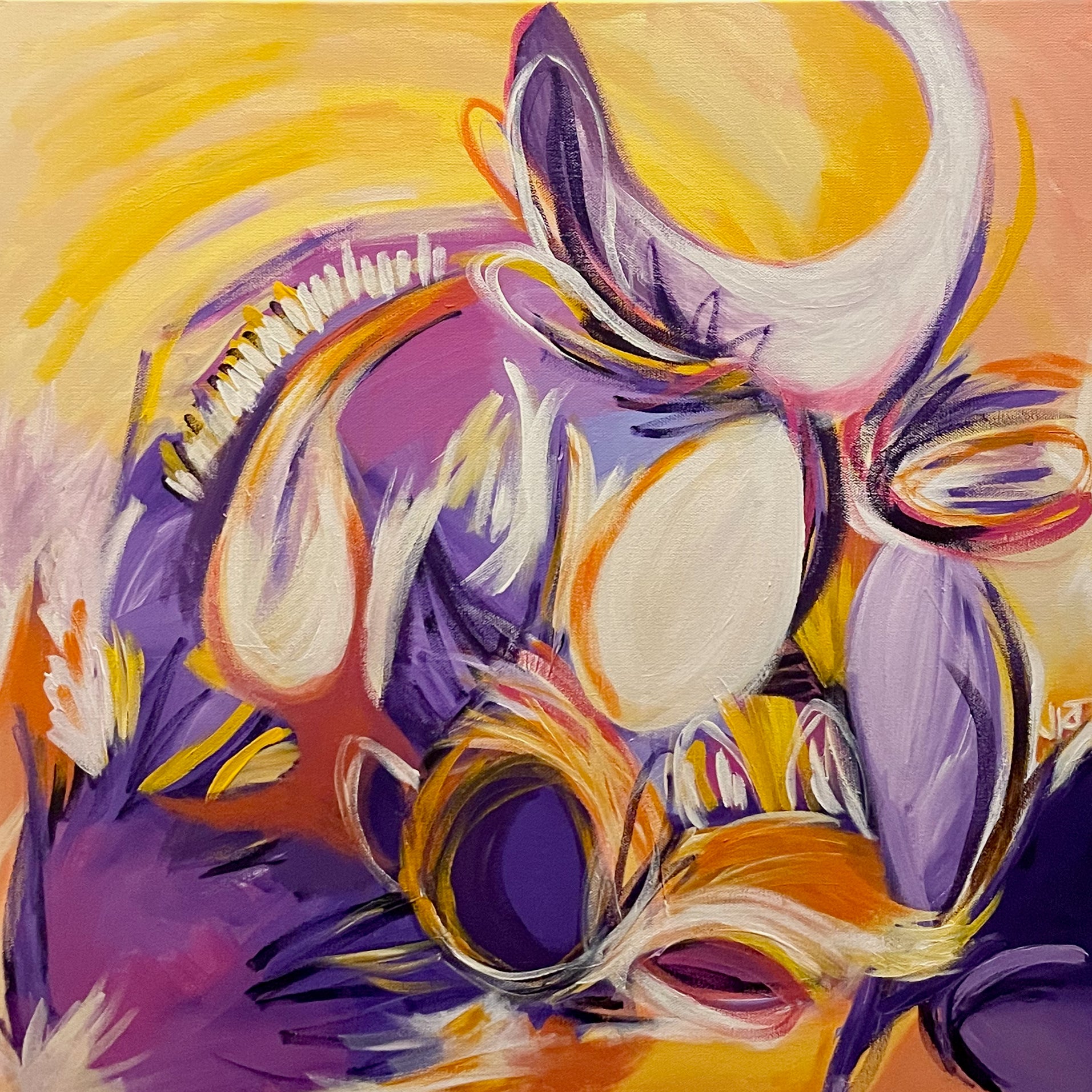 Rich colors of Summer in fluid and heavy body acrylic paints. Sweeping strokes.